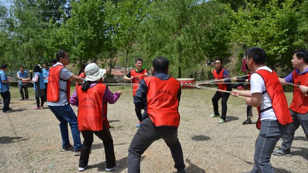 到达培训基地后,户外拓展活动正式拉开序幕。开班前,带队教练通过鼓励大家自由分组、选取团队名称、确定团队口号等一系列小游戏,来初步建立成员对各自团队的认同、组件团队文化。在进行了一个多小时的拓展破冰活动后,又进行了“鼓动人心”、“挖金矿”和“无敌风火轮”等团建游戏,趣味纷呈的游戏帮助各位老师增加了了解、建立了信任,使大家更加紧密地融合在一起。在“鼓动人心”游戏中,每位团队成员都调整自己拉动大鼓的节奏,使团队步调一致、齐心协力地朝向目标努力;在“盲人摸象”游戏中,强调了倾听的重要性和有规矩、有纪律地完成任务的意义。