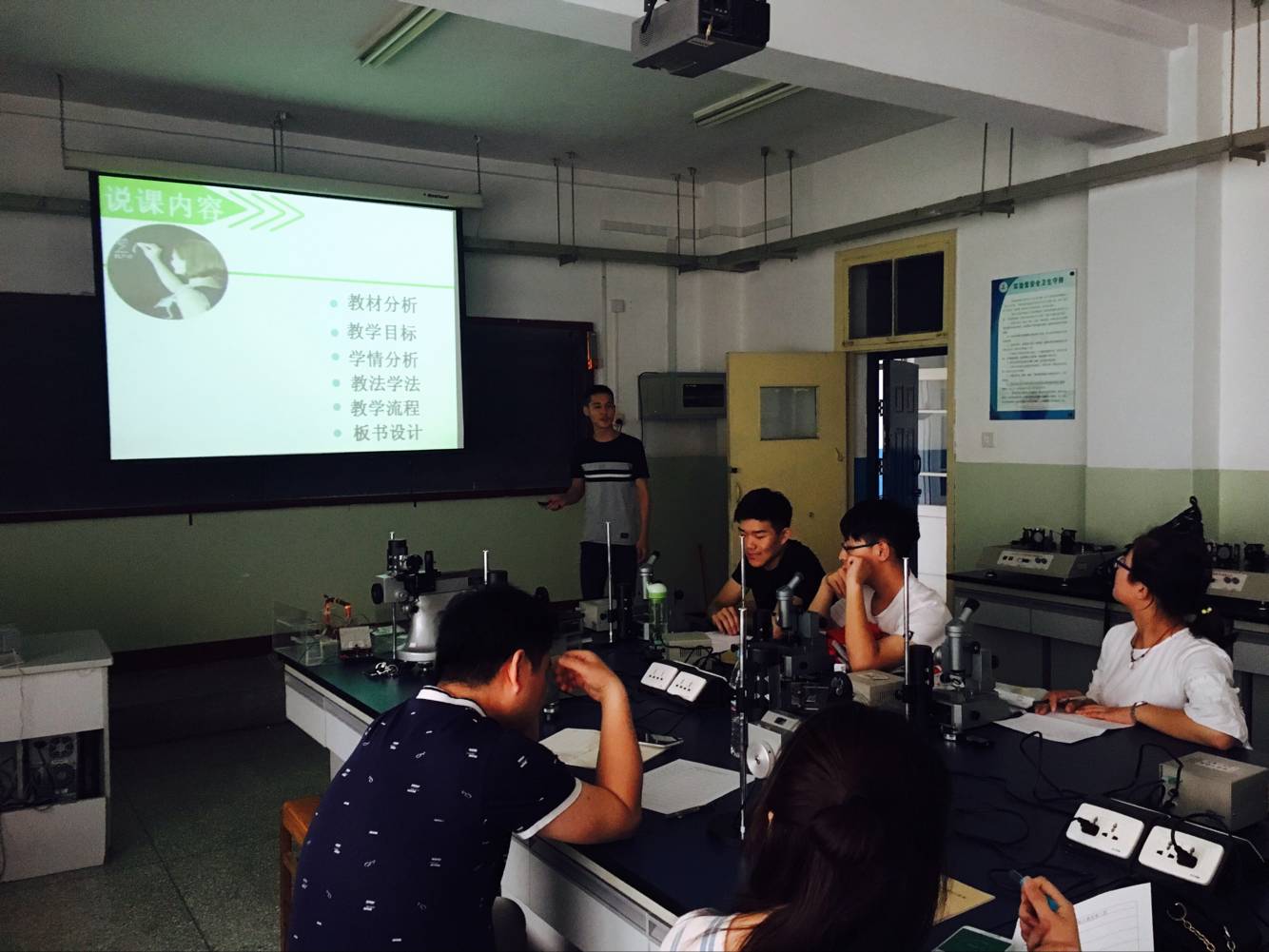 此次校赛要求选手准备不少于十分钟不多于十五分钟的授课内容,分为说课和讲课两部分,说课是讲解这节课的授课思路,讲课是选取教学环节中一部分内容模拟授课。参赛选手经过初赛选拔,经验更加丰富,而且经过精心的准备,在说课台上的他们更加从容,镇定。从说课部分的大纲简述到讲课部分的细致讲解,同学们的思路清晰、表达清楚,实验设计新奇有趣,演示文稿美观大方,无一不显示了我院学生的优秀能力和严谨态度。