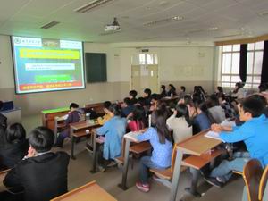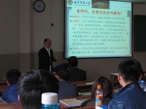 李新乡教授是省内知名的物理课程与教学领域专家,常年担任山东省物理教学技能大赛的主要评委,一直从事物理教学及课程标准方面的研究,多年来,编著书籍教材30余部,发表论文近百篇。李新乡教授到院后,首先与学院领导及部分学院教师见面,并就相关问题进行了探讨和座谈。下午四点,在十一教举办的题为“基于课程标准的物理教学设计”的济大论坛准时开始,学院院长王少清,部分教师及数百名学生到场参加了本次济大论坛。