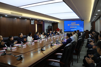 4月18日上午,山东省量子未来技术学院揭牌仪式暨建设研讨会在济南大学办公楼第一会议室隆重举行。山东省教育厅高等教育处处长曾宪文,济南量子技术研究院执行院长张强、副院长周飞,河南大学纳米科学与材料工程学院副院长白锋,中国电信济南分公司党委书记、总经理刘晓峰,中电信量子集团华北公司副总经理洪泰辉,九章(济南)量子科技有限公司总经理徐佳敏应邀出席。学校党委书记刘春华,党委副书记、校长刘宗明,教务处、物理必一·运动(B-Sports)-「登陆注册开户官网」、材料科学与工程学院、化学化工学院、信息科学与工程学院、管理科学与工程学院相关负责同志参加,相关学院师生代表在分会场参会。会议由学校党委常委、副校长王霞主持。