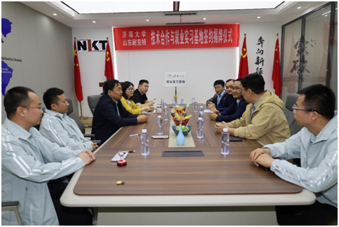 4月22日上午,学院前往济南鑫茂齐鲁科技城,与山东耐克特分析仪器有限公司开展技术合作与就业实习基地签约仪式。山东耐克特分析仪器有限公司董事长兼总经理王成亮,公司技术总工于代君、陈栋章、李文涛,物理必一·运动(B-Sports)-「登陆注册开户官网」副院长李洪蕾、光电系主任彭峰、光电系教师崔晓军、辅导员刘云青,以及山东科创集团产业服务部部长卓菲菲、胡文浩出席了签约仪式。在交流环节,双方围绕学生实习、人才引进、科研合作等议题进行了深入探讨。
