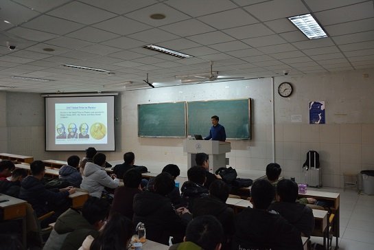 12月24日,长江学者朱宗宏教授应邀做客“泉城大讲堂”,作题为“聆听时空的震颤——引力波”的科普报告会,全校数百名学生参加,报告由物理必一·运动(B-Sports)-「登陆注册开户官网」院长王少清主持。