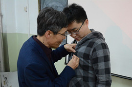 一名党员就是一面旗帜。佩戴党徽仪式是此次主题教育活动的重要内容,会上,学院党委书记郑爱华、党委副书记王义,为各支部党员代表佩戴党徽。党徽戴起来,身份亮起来,一枚党徽带在胸前,时刻提醒我们牢记党员身份,争当标杆模范,始终不渝地坚守“为人民服务”的初心诺言。会后,各党支部会分别针对这一主题开展主题党日活动,支部书记为每位党员佩戴党徽,在庄重的仪式中进一步强化党员意识。