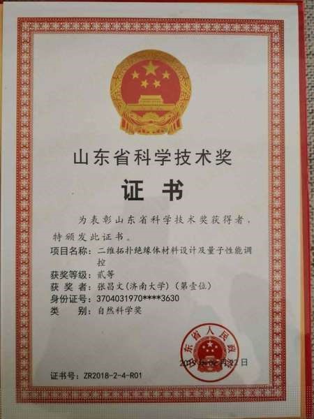 4月4日上午,山东省科学技术奖励大会在济南召开。我院张昌文教授主持完成的“二维拓扑绝缘体材料设计及量子性能调控”成果荣获山东省科学技术奖二等奖。