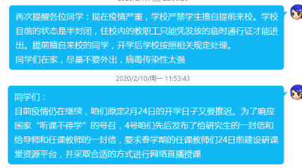 新冠疫情阻隔了如期开学,但是,并没有阻止知识的传播和教师传道解惑的工作。这场疫情也使我们教师和学生学到了更多技能,也懂得了在信息化、智能化、网络化的背景下,我们的高等教育方式还有多种实现方式。线上线下虽是两个教学途径,但是目标是一致的,为了传播知识。物理学院研究生管理办公室、导师和研究生为了这个目标,通过多样化线上教学形式,确保了教学内容不缩水、教学质量不降低。