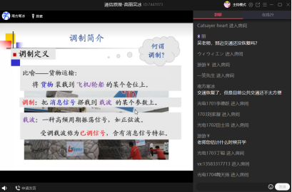 《通信原理》课程由高丽老师和吴冰老师共同讲授,前期线上教学由身在济南的高丽老师进行,采用腾讯课堂直播的方式授课,辅助QQ群答疑和作业资料发布等。吴冰老师在前期的线上教学中,每节直播课堂都积极旁听,参与练习题和资料发布。3月29日,克服重重困难,一堂由吴冰老师主讲的跨越南北的直播课堂开始了。