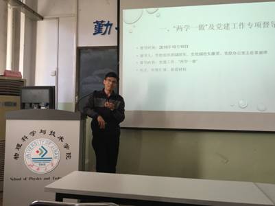 首先,郑书记就学院基层党建和“两学一做”教育活动等方面所做的成果及学校专项督导组提出的意见和建议,向全体中国共产党员进行通报并提出整改要求。