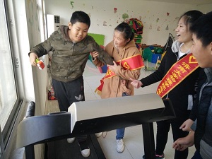 夏日炎炎,却也不能阻挡志愿者们积极奋发的脚步,志愿者们在领队朱彭真的带领下,带着满怀的热情再次来到天翼儿童康复中心,为孩子们尽一份绵薄之力。在领队的安排下,志愿者们陪着孩子们做康复训练,他们耐心,和善,阳光,尽己所能的让孩子们感受到关怀,感受到爱,孩子们的努力认真,感动了康复中心的工作人员,更是在孩子们的心中注入温暖的力量,伴随着他们成长,而孩子们天真无邪的笑容也深深的触动了志愿者的心。活动结束时,我们的志愿者为孩子们送上了自己带来的礼物,并对孩子们献上了由衷的祝福。那些孩子们也依依不舍地向志愿者道别。