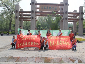 到达骑行路线约三分之二时,志愿者们按计划在路旁的一个绿化地休息。虽然气温有些高,志愿者们的额头上已渗出星星点点的汗珠,但他们并不觉累,反倒觉得很轻松,欢声笑语,交流着一路上骑行的乐趣。休息过后,志愿者们再次踏上行程,他们以再次充盈的体力很快到达目的地。志愿者们于森林公园门口在此次骑行活动的条幅上签下自己的名字并合影留念。