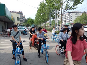 风轻云淡,阳光和煦。在这样一个晴朗的早上,志愿们提前找好共享单车在集合地点等候,整装待发。人员到齐,在领队江苏细心讲解路线及注意事项之后,志愿者们便启程出发,前往规划地点——济南市森林公园。领队江苏在队前领路,志愿者们前后保持一定距离骑行。志愿者们在路上不急不躁,徐徐前行,过马路时有条不紊,形成了一道亮丽的风景线。