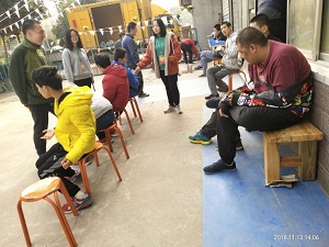 11月13日,物理学院青年志愿者协会志愿者在领队王玉明的带领下,到达了信望爱残疾人康复中心开展公益活动。
