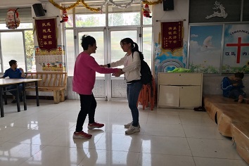 初到康复中心,志愿者们发现自闭症儿童的娱乐活动非常少。为给他们带去欢乐,志愿者们在看护人员的帮助下,带领他们起散步, 并在散步的同时和他们聊天,沟通他们内心的烦恼与忧愁,以便帮助他们能更好的恢复。不仅如此,志愿者们还同孩子们一起唱歌、朗诵诗歌、玩游戏,步步打开这些孩子的心房 ,将快乐传递给孩子们。