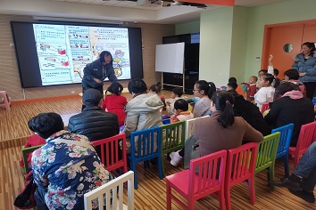 来到图书馆后,志愿者先与中心负责人进行交接,在中心负责人讲完中华传统故事后进行绘本讲读。此次绘本讲读的故事是漫游电世界,志愿者在开场时先与小朋友们做了实验,让孩子们体验了磁是如何生电的。孩子们对此表现出了极大的热情,并表示以后希望当一个科学家,现场气氛十分活跃,家长们的兴致也很高。在实验过后,志愿者开始讲起故事,并用多种提问及讲解的方式,让孩子们积极思考,了解电的知识。志愿者还通过穿插其他生活方面小故事的方式,让孩子们注意用电的常识,以及电的好处和危害。孩子们都端正坐好,仔细听课,十分认真,并有一部分小朋友积极踊跃提出问题,现场知识氛围浓厚,小朋友们都沉浸在绘本的海洋中。在绘本讲读的过程中,也有相关人员对现场进行拍摄,活动的负责人也对此表示了支持及鼓励。