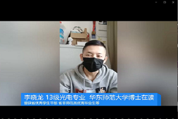 参与科技创新活动是理工科学习的一个重要途径,也是一个提升自己的宝贵机会,为向学院2018级、2019级光电系同学们普及科创相关知识,动员同学们投入到科技创新活动中,物理学院于4月12日上午以线上直播方式举办了“启航梦想,光耀青春”光电系创新创业论坛,邀请2016级同学及毕业校友分享经验,实现在校生与校友之间的互动交流,为同学们的科创道路解答疑惑。