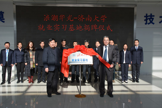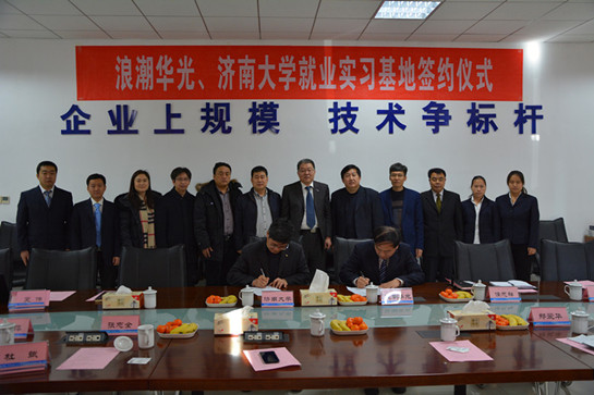 2018年1月23日,济南大学常委、副校长杜斌,研究生院副院长张志全,学院党委书记郑爱华,院长王少清,副书记王义及学院学生工作办公室负责老师一行赴潍坊与浪潮华光集团洽谈合作,签订就业实习基地合约。