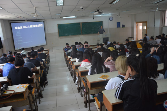 为落实国家鼓励高校应届毕业生入伍服义务兵役相关优惠政策宣传到位,5月23日,学院邀请学院办公室主任罗良鸿为我院2019届毕业生进行应征入伍政策宣讲。学院党委副书记王义以及2019届全体毕业生参与宣讲会。